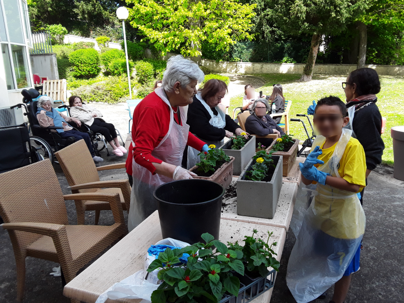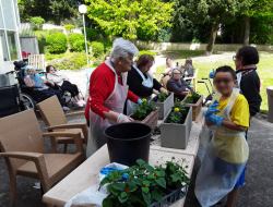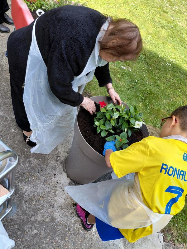 Les jardinières, désormais colorées et parfumées, embellissent les espaces extérieurs et témoignent de ce beau moment de partage intergénérationnel.