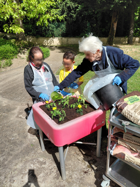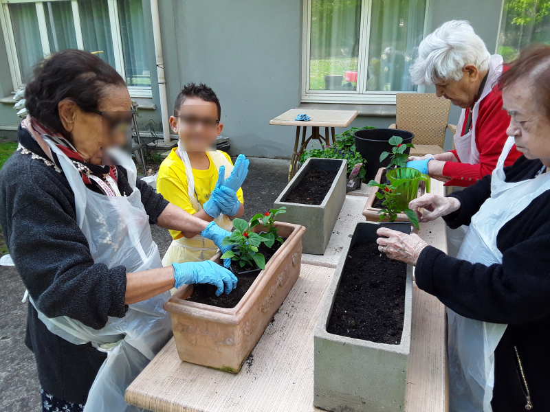 Petits et grands ont mis les mains dans la terre, arrosé, planté et échangé dans la bonne humeur. Les enfants ont particulièrement apprécié découvrir les odeurs des plantes aromatiques et participer à cette activité aux côtés des résidents et de leurs proches.