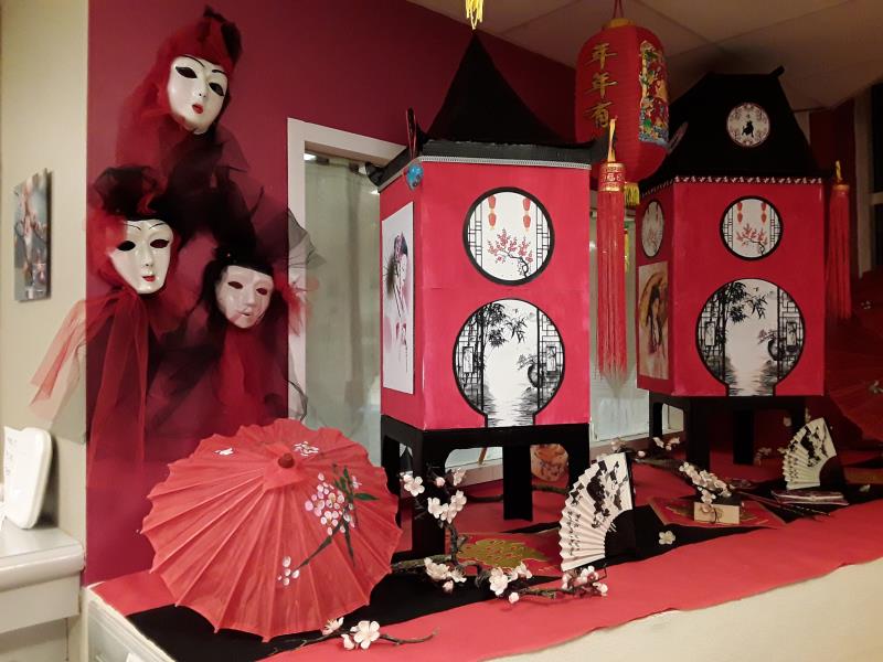 Le Clos Saint-Jean > Actualités > Décor de l'entrée Décor de l'entrée Publiée le 16/02/2021 Notre décor a été installé dans le hall de l'entrée, les résidents étaient contents de pouvoir admirer leur création en situation !!!!!