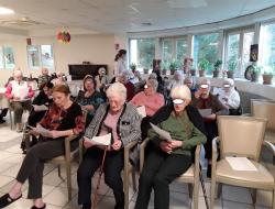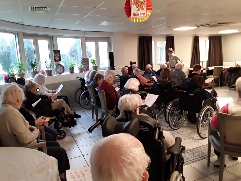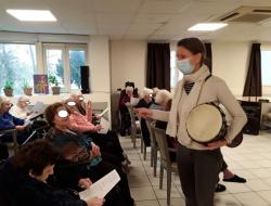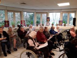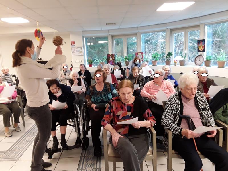 Lors de la séance de musicothérapie dédiée au thème “Premier amour”, les résidents ont été invités par Anne-Sophie musicothérapeute, à replonger dans leurs souvenirs grâce à des chansons marquantes de leur jeunesse. Dès les premières notes de “Tous le garçons et les filles ”, “une belle histoire ” ou encore “la plus belle pour allé danser”, les visages se sont éclairés et les émotions ont affleuré.