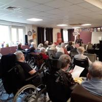 Publiée le 16/09/2025Ce mardi, les résidents ont partagé un moment chaleureux autour d’une séance de musicothérapie sur le thème de la météo : soleil, pluie, neige et parapluie étaient au rendez-vous en chansons. Accompagnés par Anne-Sophie, ils ont chanté avec enthousiasme et bonne humeur. Une activit [...] Lire la suite